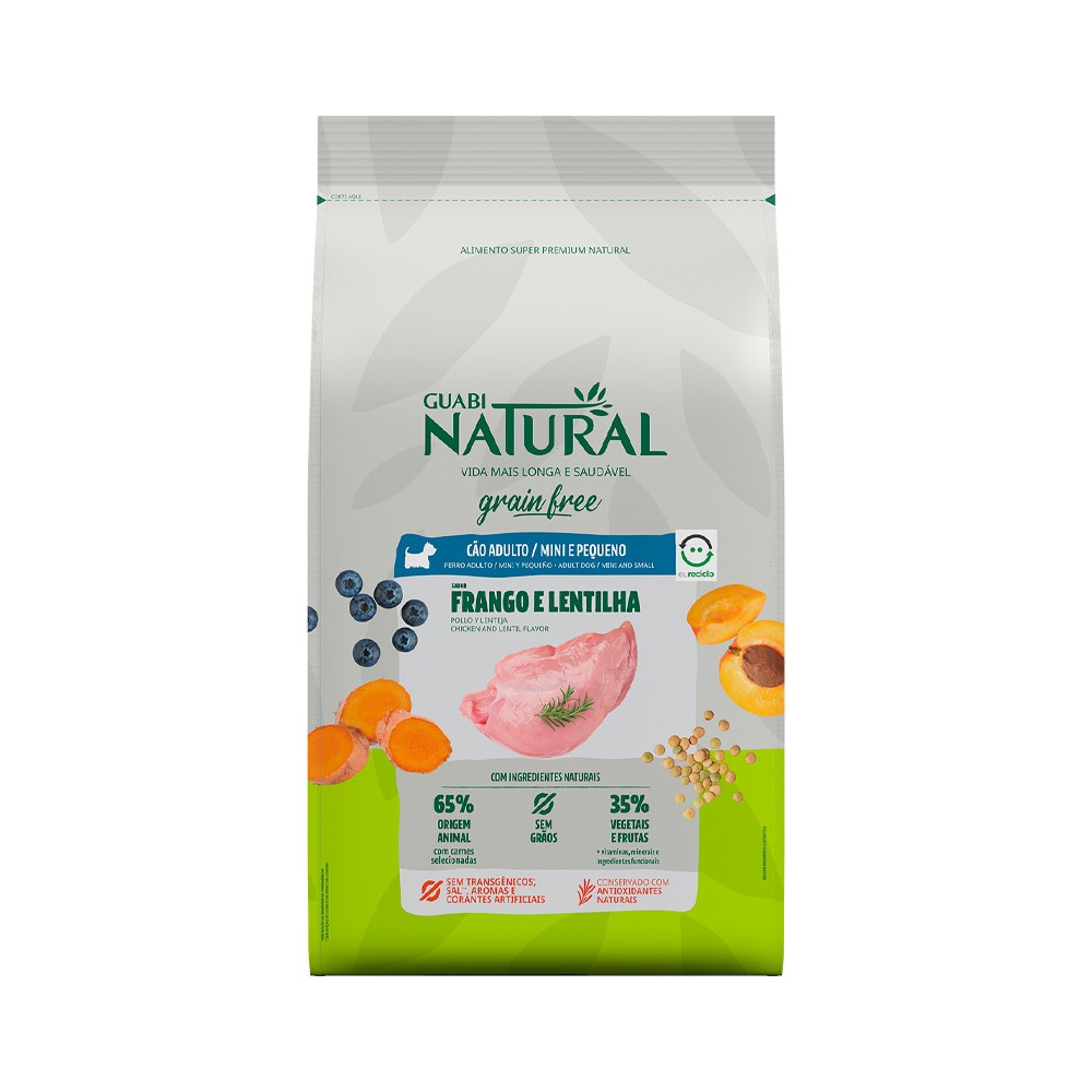 Ração Guabi Natural Grain Free para Cães Adultos Porte Mini sabor Frango & Lentilha