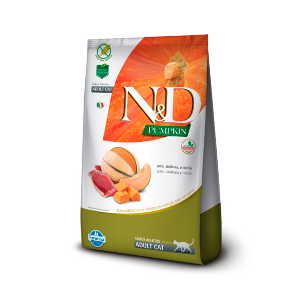 Carne de pato, farinha de vísceras de aves (pato e frango) (mín 10%), abóbora desidratada (mín. 2,5%), ovo desidratado, farinha de vísceras de frango, farinha de torresmo (proteína isolada de suíno), farinha de peixe, amido de batata, óleo de peixe, óleo de frango, polpa de beterraba, fibra de ervilha, alfafa desidratada, lignocelulose, psyllium, levedura de cerveja, cenoura desidratada, espinafre desidratado, melão desidratado (mín. 0,1%), laranja desidratada, maçã desidratada, blueberry em pó, extrato de romã, extrato de chá verde, extrato de aloe vera, extrato de cúrcuma, betacaroteno, luteína, fruto-oligossacarídeos, mannan-oligossacarídeos, DL-metionina, taurina, sulfato de condroitina, sulfato de glucosamina, extrato de yucca, zeolita, hidrolisado de fígado de frango e/ou suíno, vitaminas (A, D3, E, K3, B1, B2, B6, B12, C, biotina, niacina, ácido pantotênico, ácido fólico, cloreto de colina), cloreto de potássio, ácido fosfórico, ferro orgânico, cobre orgânico, zinco orgânico, manganês orgânico, selênio orgânico, iodato de cálcio, propionato de cálcio, antioxidante natural (concentrado de tocoferóis). Eventual substitutivo: proteína hidrolisada de peixe.